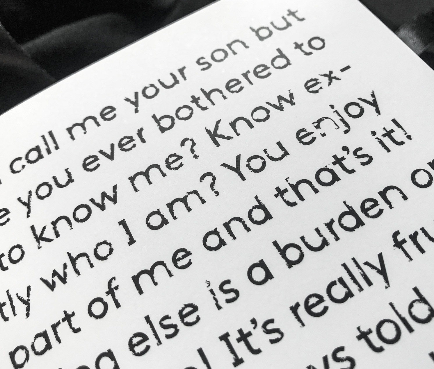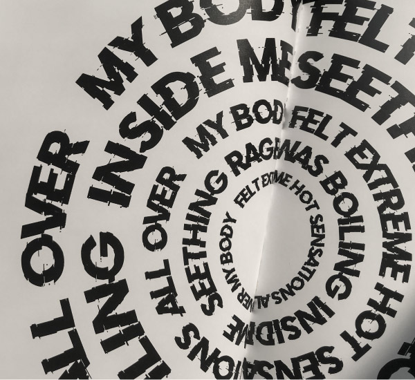 Numbing Exhilaration unfolds through layered storytelling, bringing awareness to how symptoms manifest and episodes cycle, exploring both their terrors and their cruel allure alongside everyday struggles. The design incorporates experimental typography as voice and emotion, shifting through manipulated structures and hand-drawn compositions to mirror the disorder's dualities.